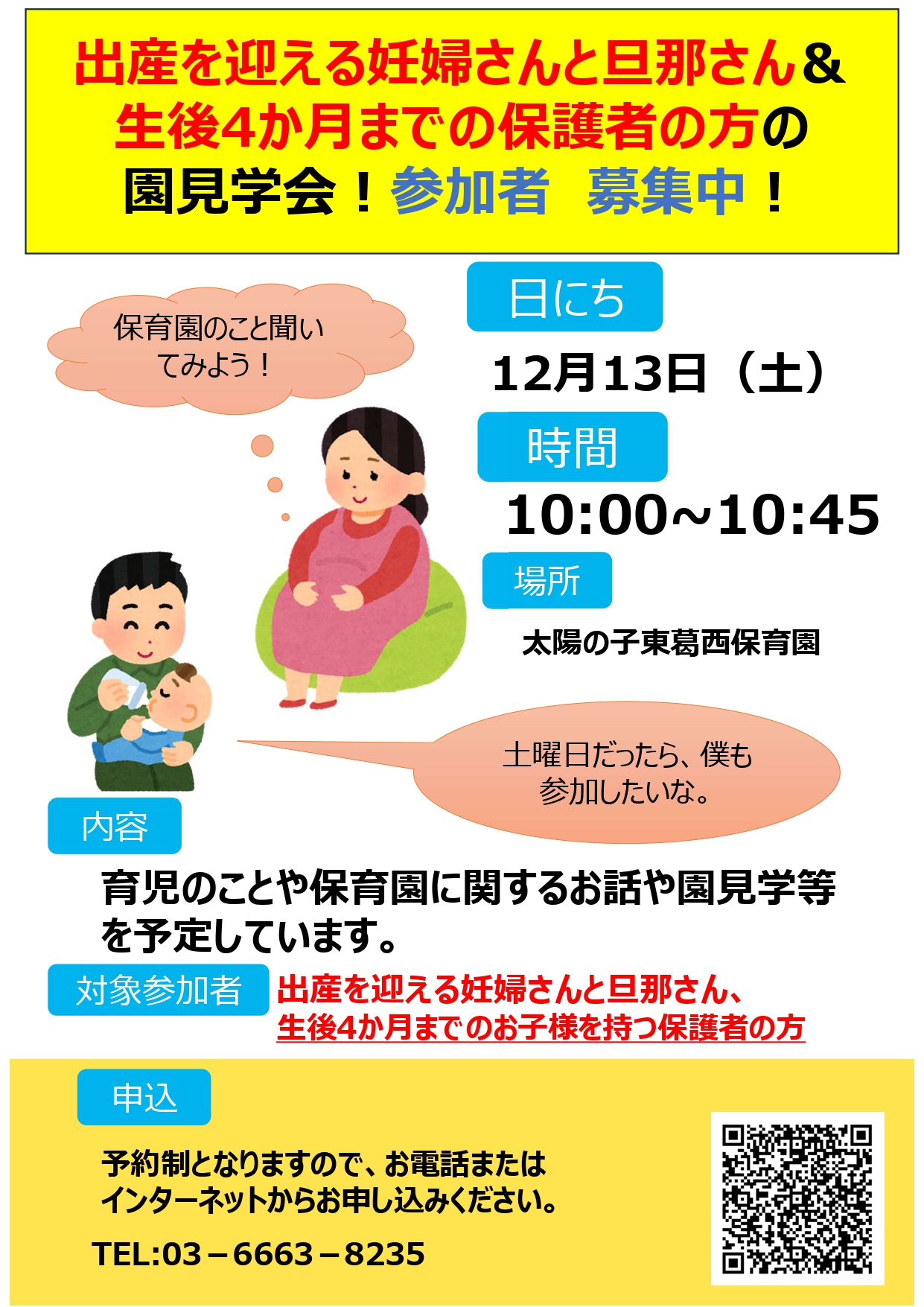 出産を迎える妊婦さんと旦那さん&生後4か月までの保護者の方の園見学会・子育て支援